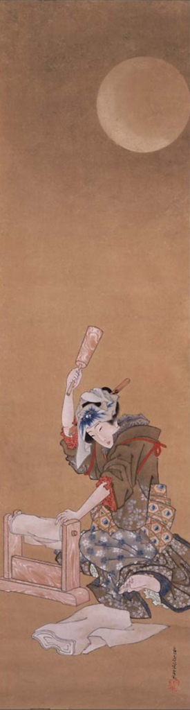 Já em Garota compondo poema à noite sob flores de cerejeiras, somos apresentados a uma cena íntima e luminosa. Uma mulher sozinha, escrevendo no jardim sob uma luz única. A obra parece um encontro inesperado, revelando talvez uma atividade secreta daquela jovem e, ao mesmo tempo, a invisibilidade das mulheres criativas. Algo real para a época e uma verdade que ainda hoje ecoa em muitas esferas.